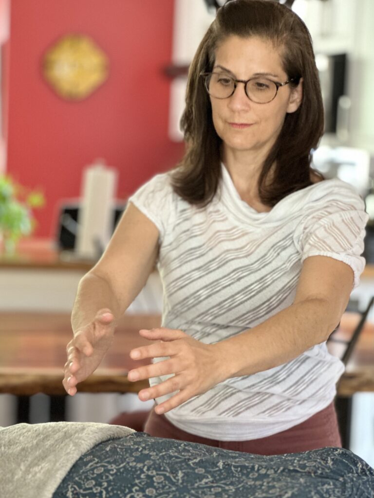 En Qigong médical, mes mains sont parfois en contact avec le corps ou au-dessus du corps, dans le champ énergétique. Je prends le temps de ressentir les différentes sensations. Mon contact avec le corps se fait par l’attention, la visualisation et l’intention pour guider et harmoniser l’énergie du corps.